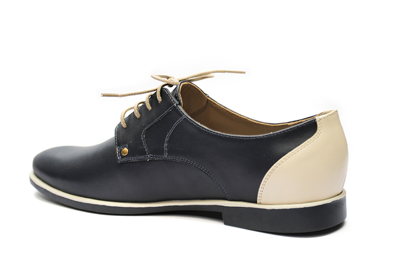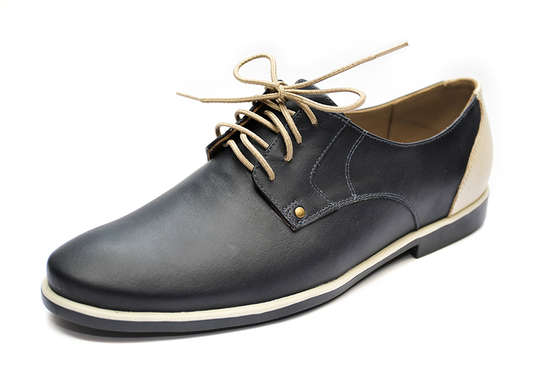 MATERIAL: Calzado caballero, 100 % Cuero crack azul con hueso Adornos de calidad, Forro badana, Planta TR, Pasador cola de rata enserado, Remaches, Plantilla acolchada latex, Falsa pre fabricada, Tallas desde 38 a 43