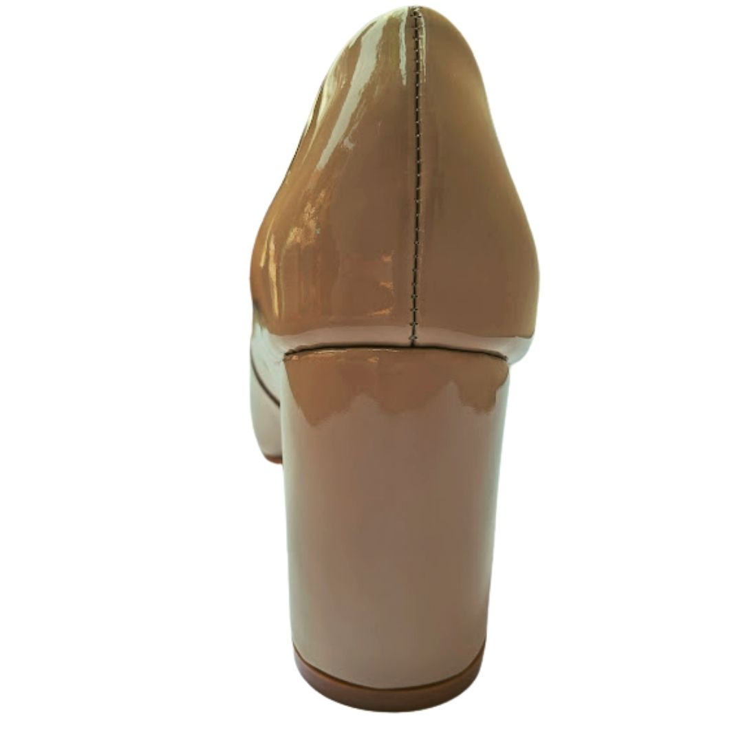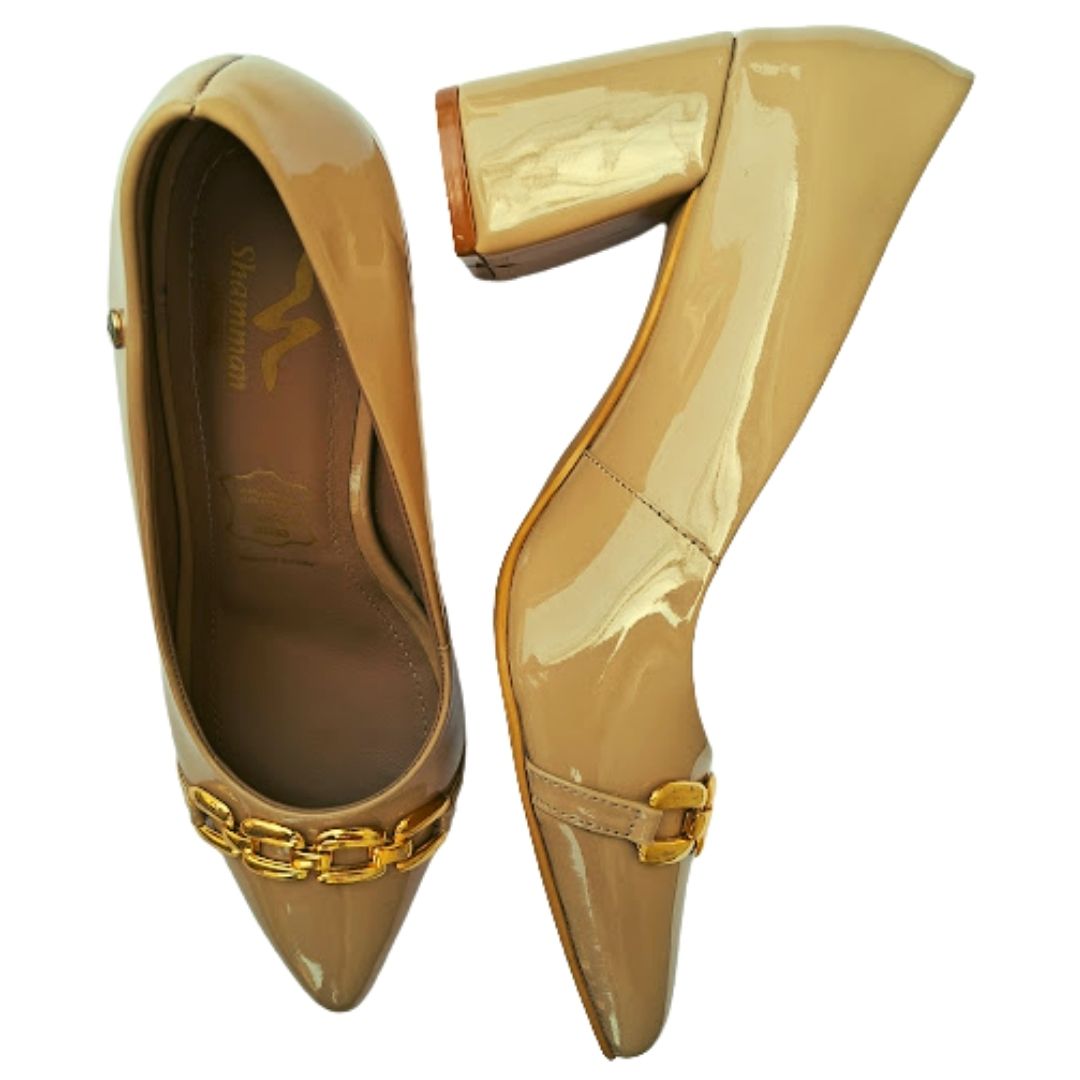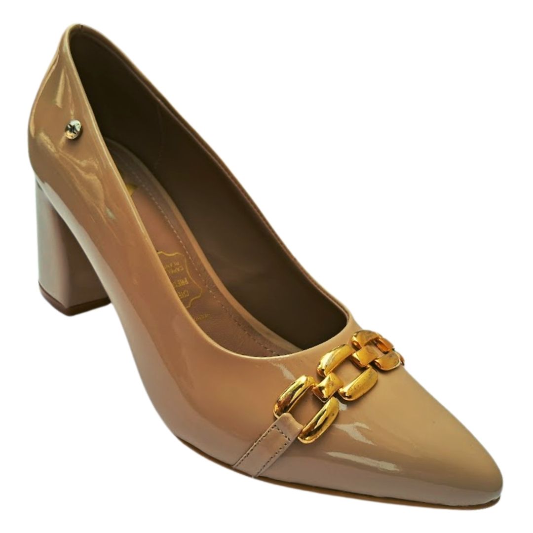 MATERIAL: 100% cuero charolado con diseño de cadena. Forro de badana confort. Plantilla de badana con latex acolchado. Taco 70.