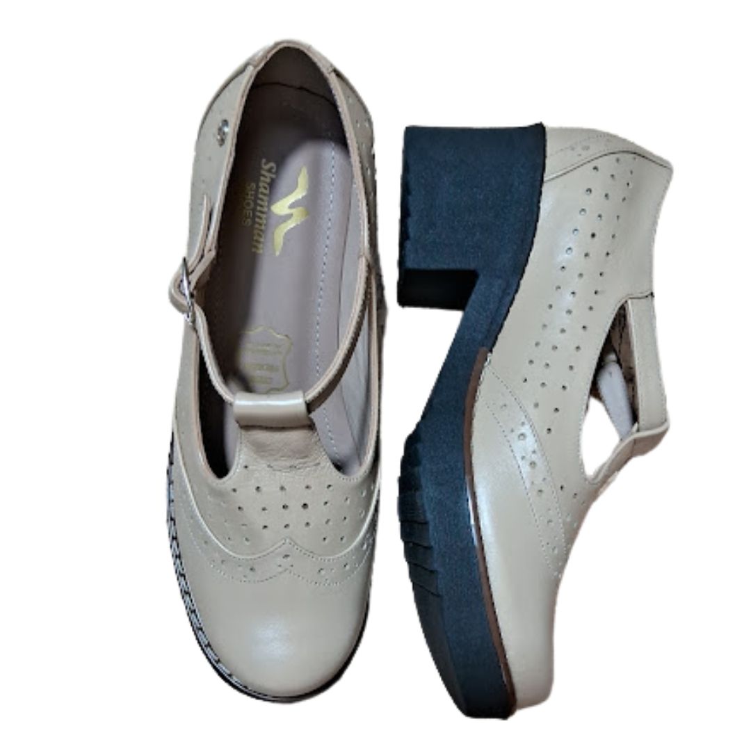 MATERIAL: 100% cuero granulado. Forro de badana confort. Plantilla de badana con latex acolchado. Taco 50 con plataforma.
