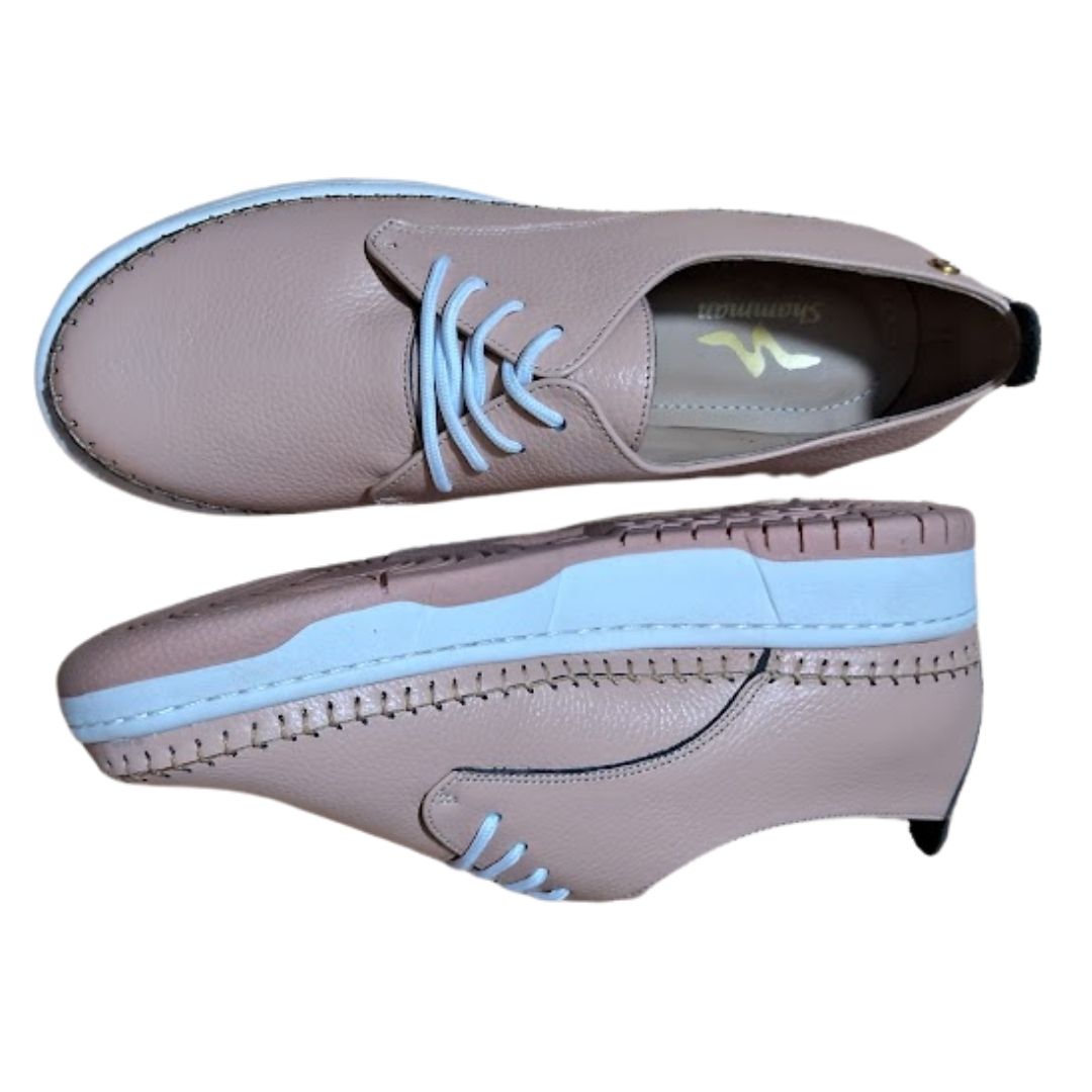 MATERIAL: 100% cuero granulado. Con pasadores. Forro de badana confort. Plantilla de badana con latex acolchado. Planta expanso.