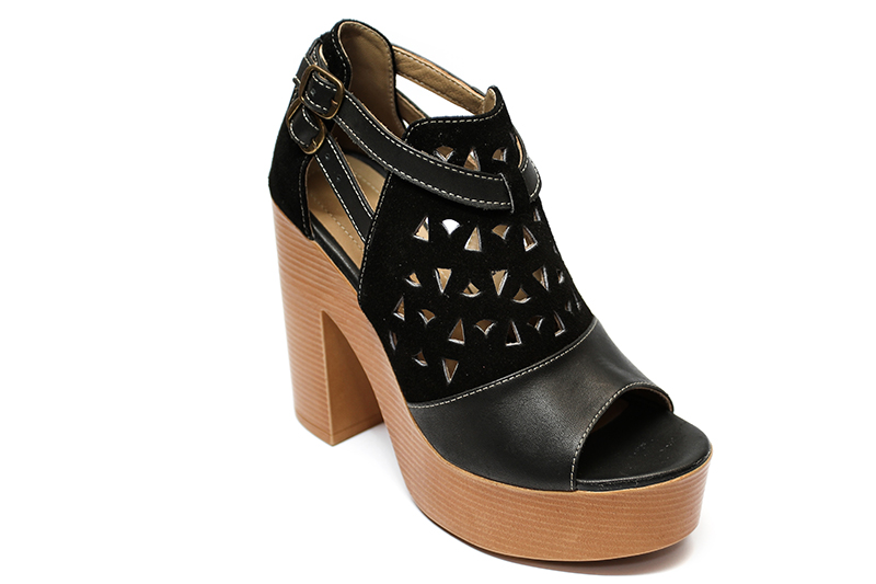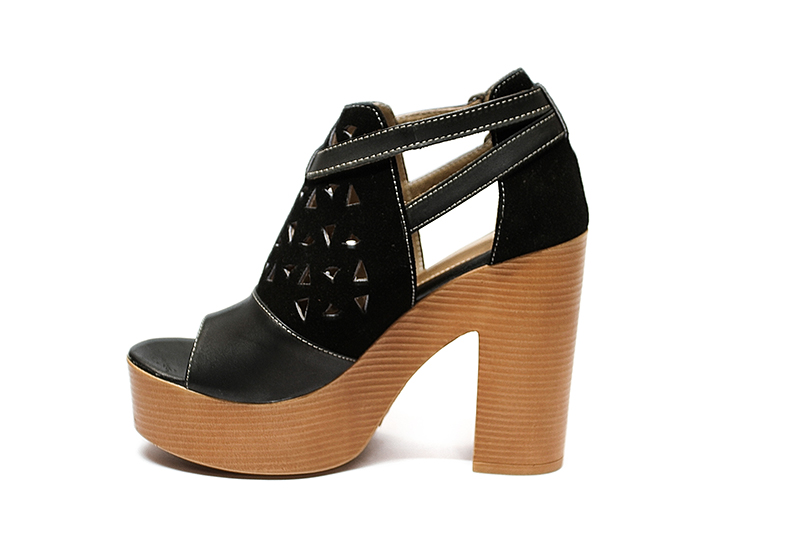 MATERIAL: Sandalia 100 % cuero gamuza y cuero crack negro, Forro puntera y forro falsa, Forro plantilla badana, Accesorio de correas y hebilla, Falsa acolchada, Planta varesina PU, Tacón con plataforma, Tallas 35 a 39