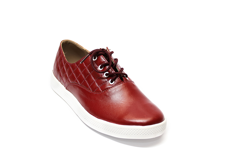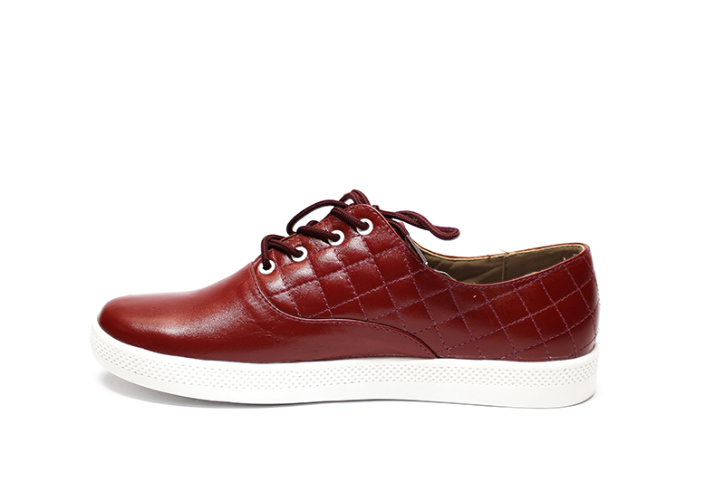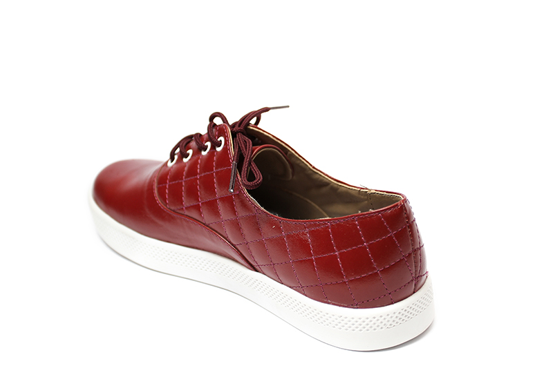 MATERIAL: Zapatilla 100 % Cuero guinda con ojalillo, Pasador enserado, Forro badana, Plantilla acolchada, Falsa pre fabricada, Planta PU, Talla 35 a 39