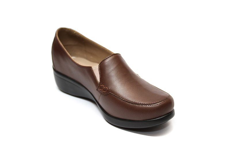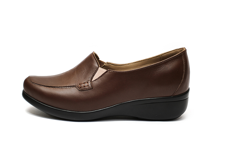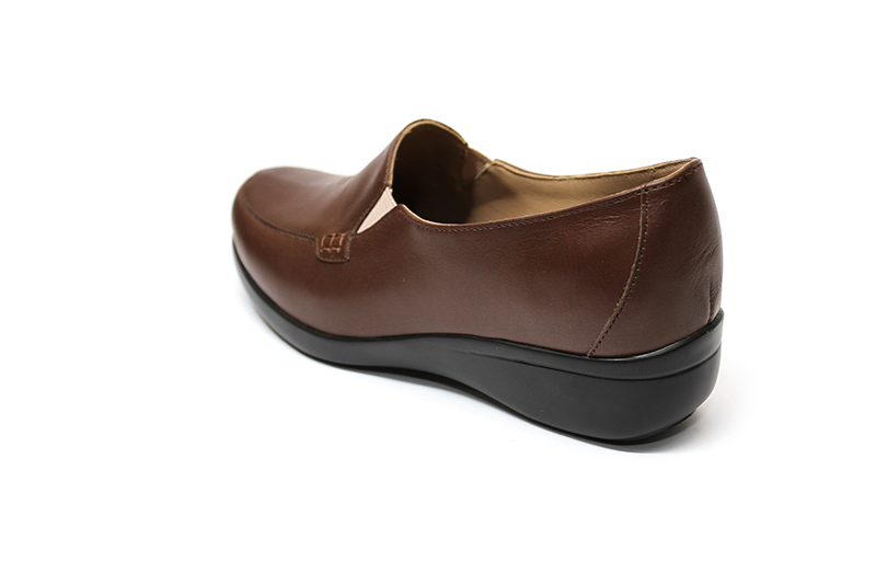 MATERIAL: MocasÃn 100 % cuero marrón con elástico, Adorno de hilo, Forro de badana, Plantilla acolchada con badana de látex, Falsa pre fabricada, Planta PU, taco 30, puntera y contrafuerte de inversión, Talla 35 a 39