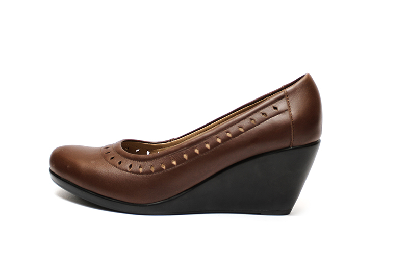 MATERIAL: Zapato 100 % Cuero marrón calado, Forro badana, Puntera y contrafuerte de inversión, Plantilla badana acolchado con látex, Falsa pre fabricada, Planta PU, Taco 70, Talla 35 a 39