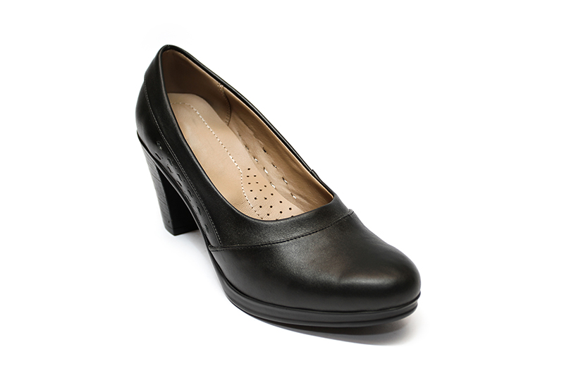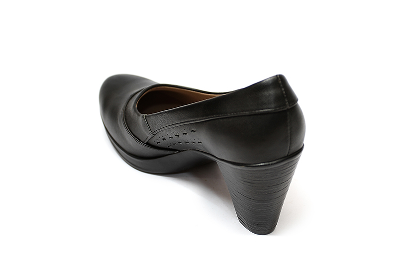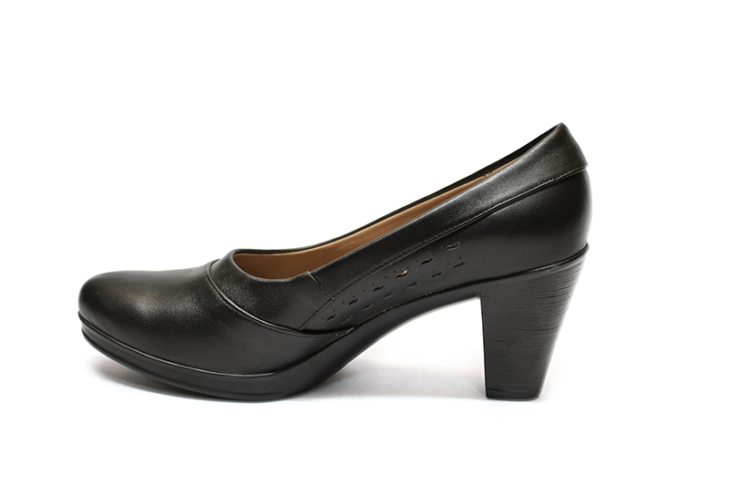 MATERIAL: Zapato 100 % Cuero negro picado, Forro badana, Puntera y contrafuerte de inversión, Plantilla badana acolchado con látex, Falsa pre fabricada, Planta Taco 70, Talla 35 a 39